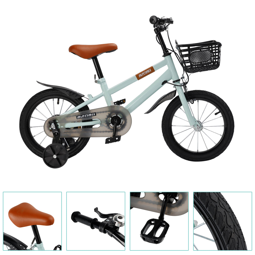 14" Kids Toddlers Bicycle for Boys and Girls with Training Wheels Basket Cyan