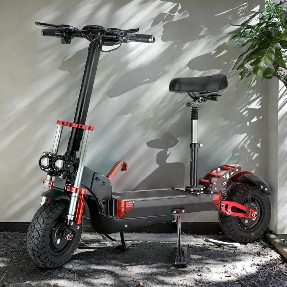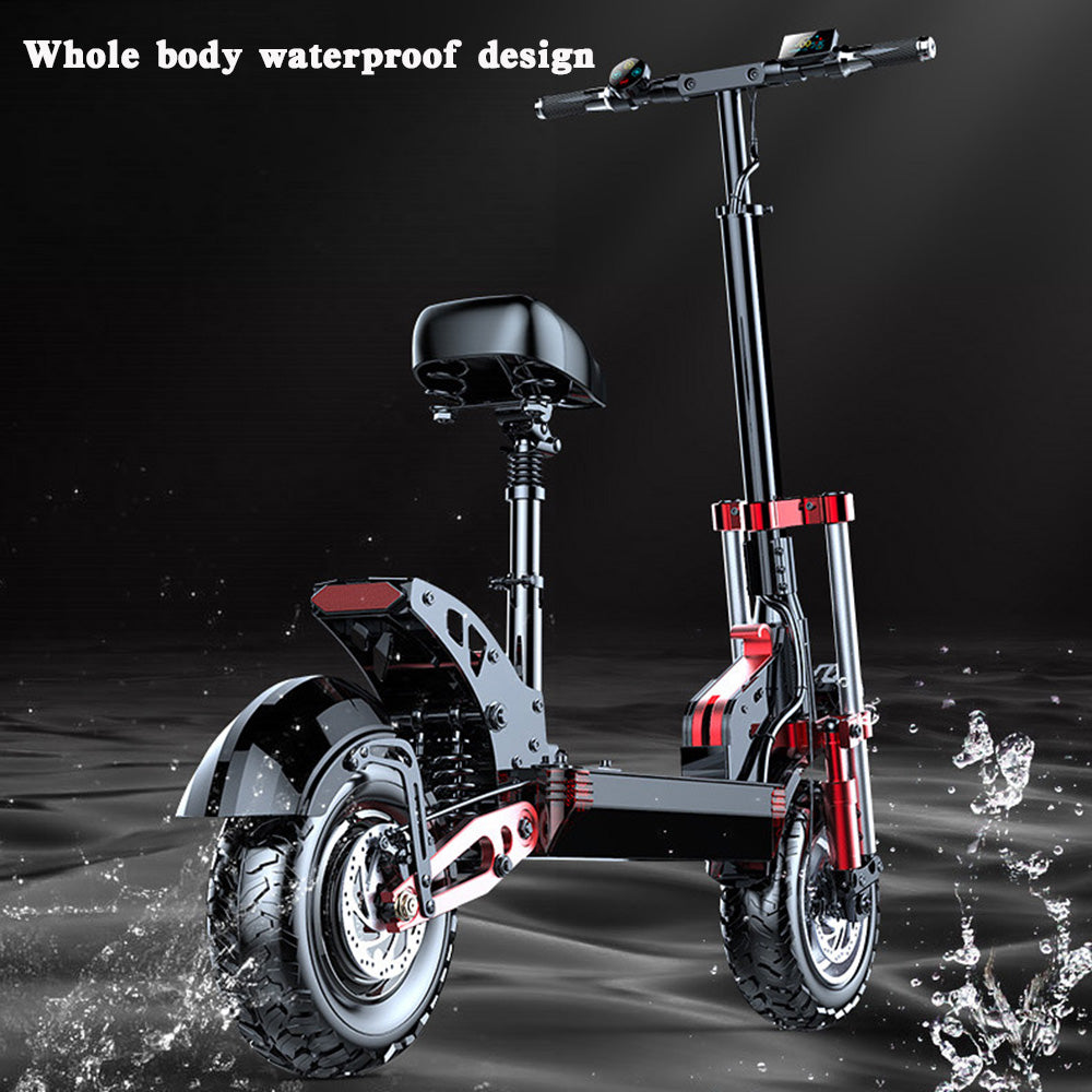 MotorGenic Unisex electric scooter is equipped with 2000W Motor (Front and rear drive motors both 1000W) and 48V 21AH Lithium battery,Provide a powerful travel experience. The maximum speed can reach 40MPH, and the longest driving distance is 80KM. The materials used are top of the industry, and the frame is made of aluminum alloy. In addition, the scooter has many features, Dual motor violent acceleration mode, NFC card induction start, turn signal function, etc..The weight of the whole body is 41kg,Let you not feel shaking during riding, enough to deal with any road conditions.The Red and black color matching is classic and fashionable