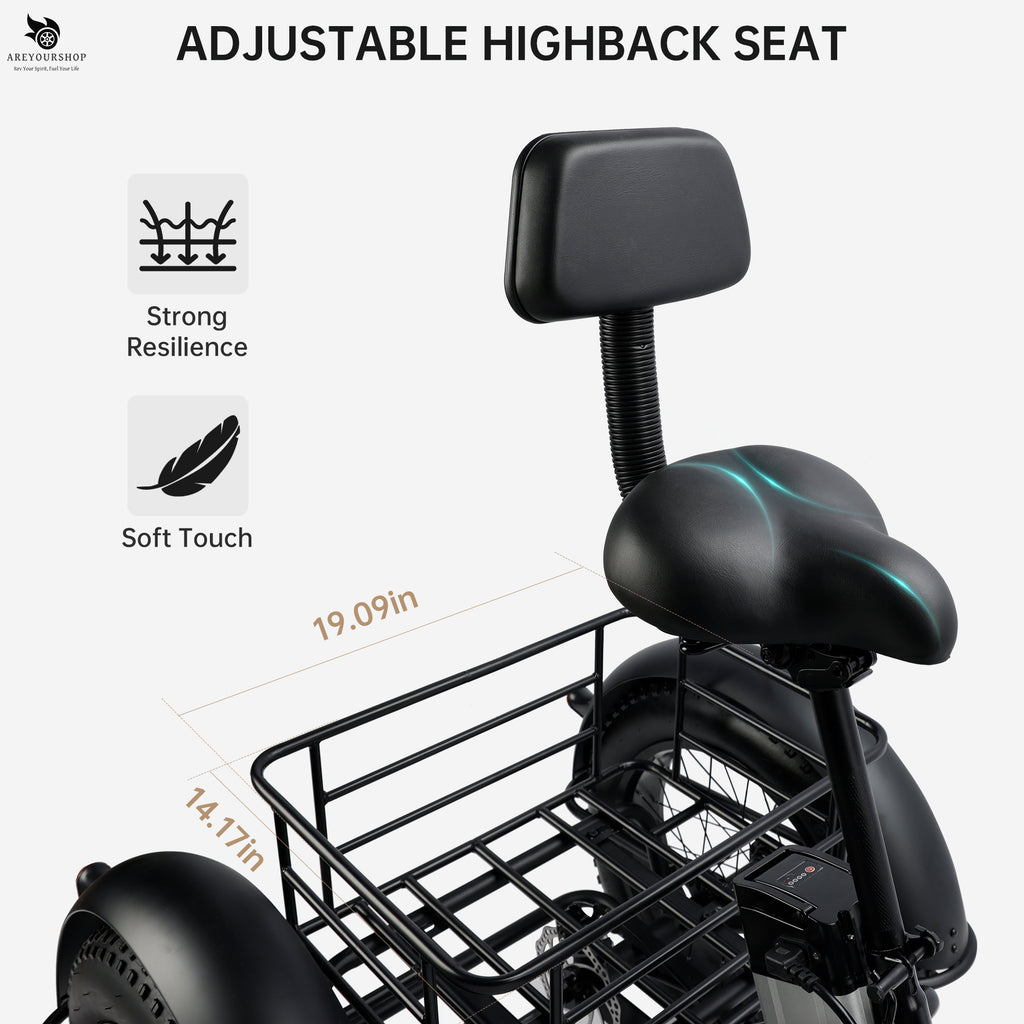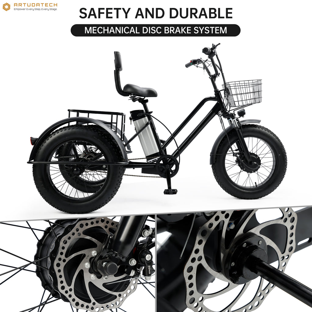 500W 48V 13A Electric Snow Tricycle 3 wheel e-bike 4.0 Fat Tire Tricycle