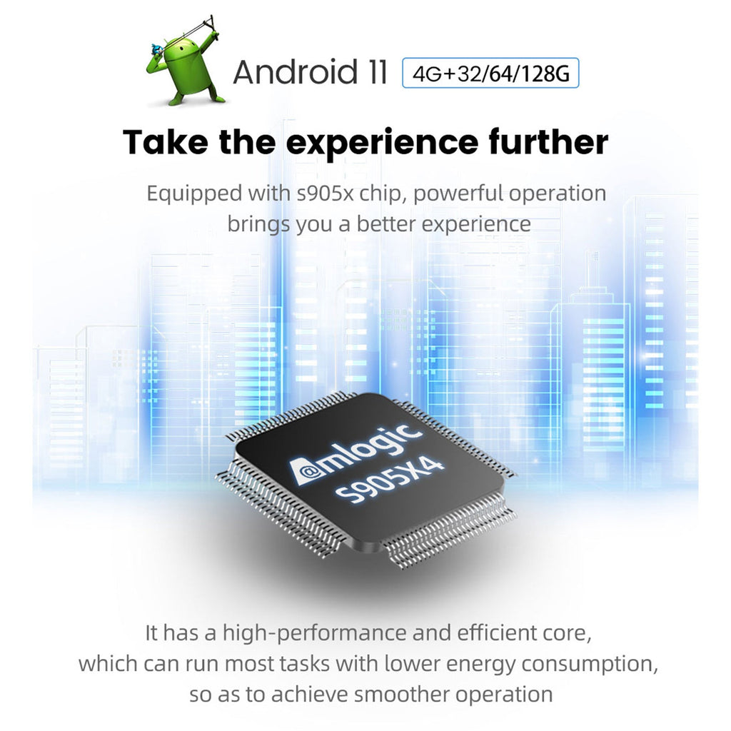 CPU:Amlogic S905X4 64-bit quad core ARM® Cortex™ A55 CPU